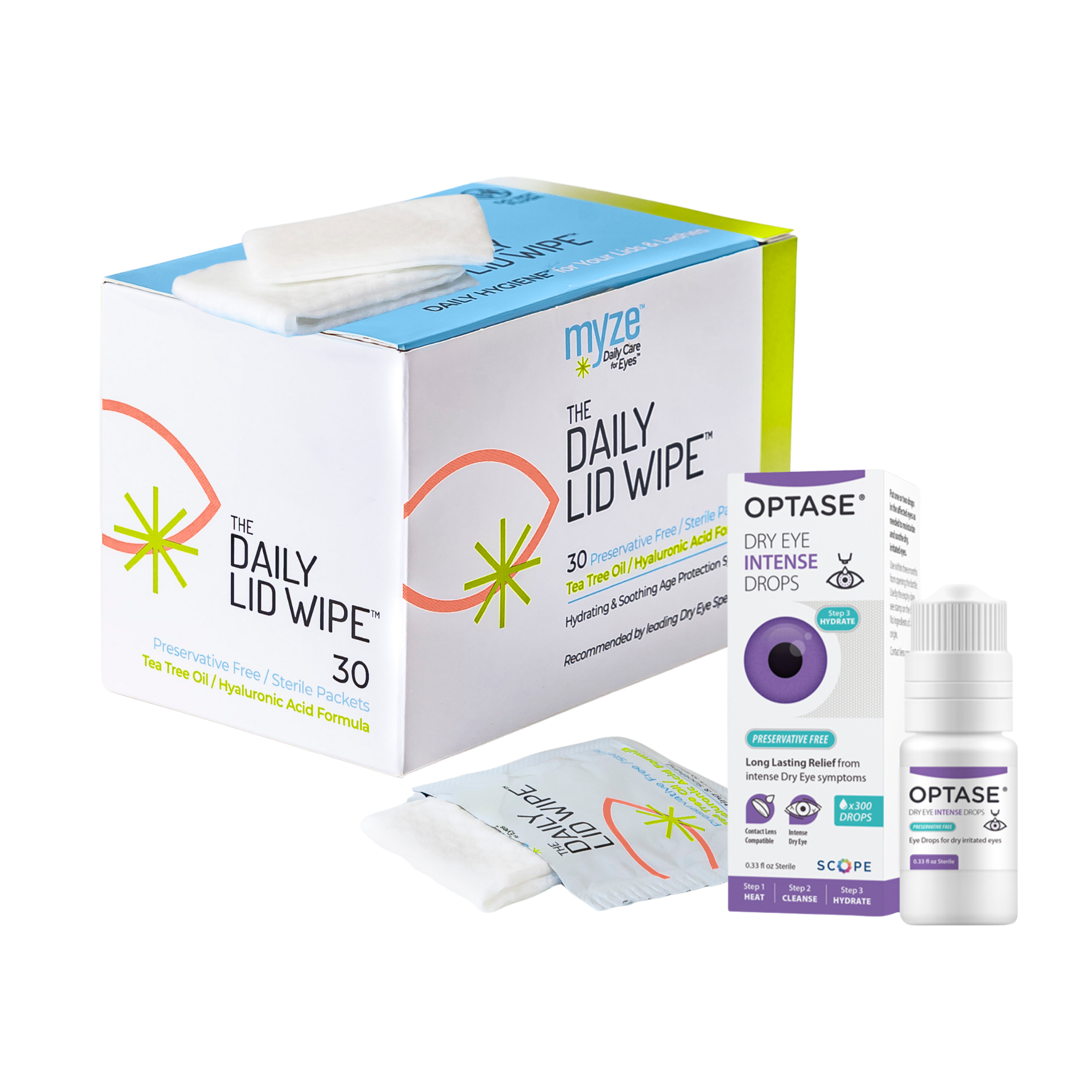 The Daily Lid Wipe™ – Gently cleanse each eyelid margin and surrounding lid area for 15-30 seconds in the morning and/or at night