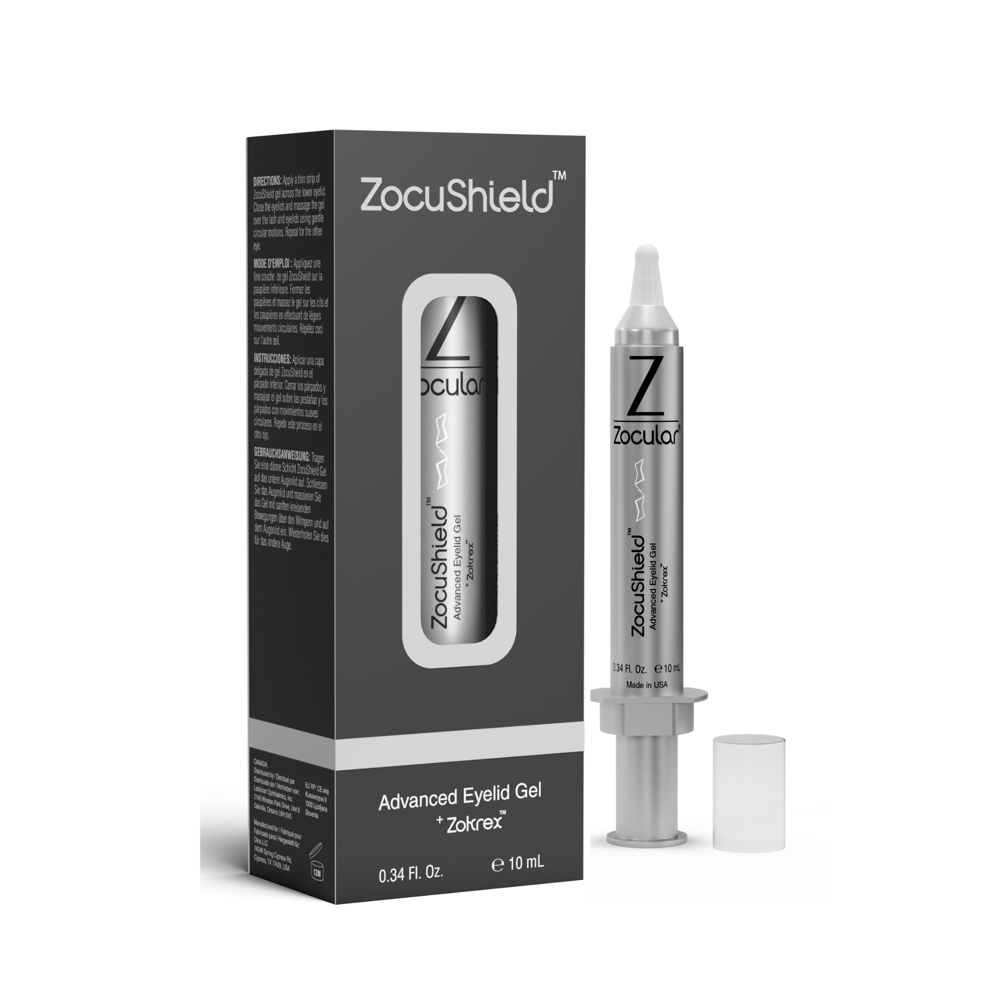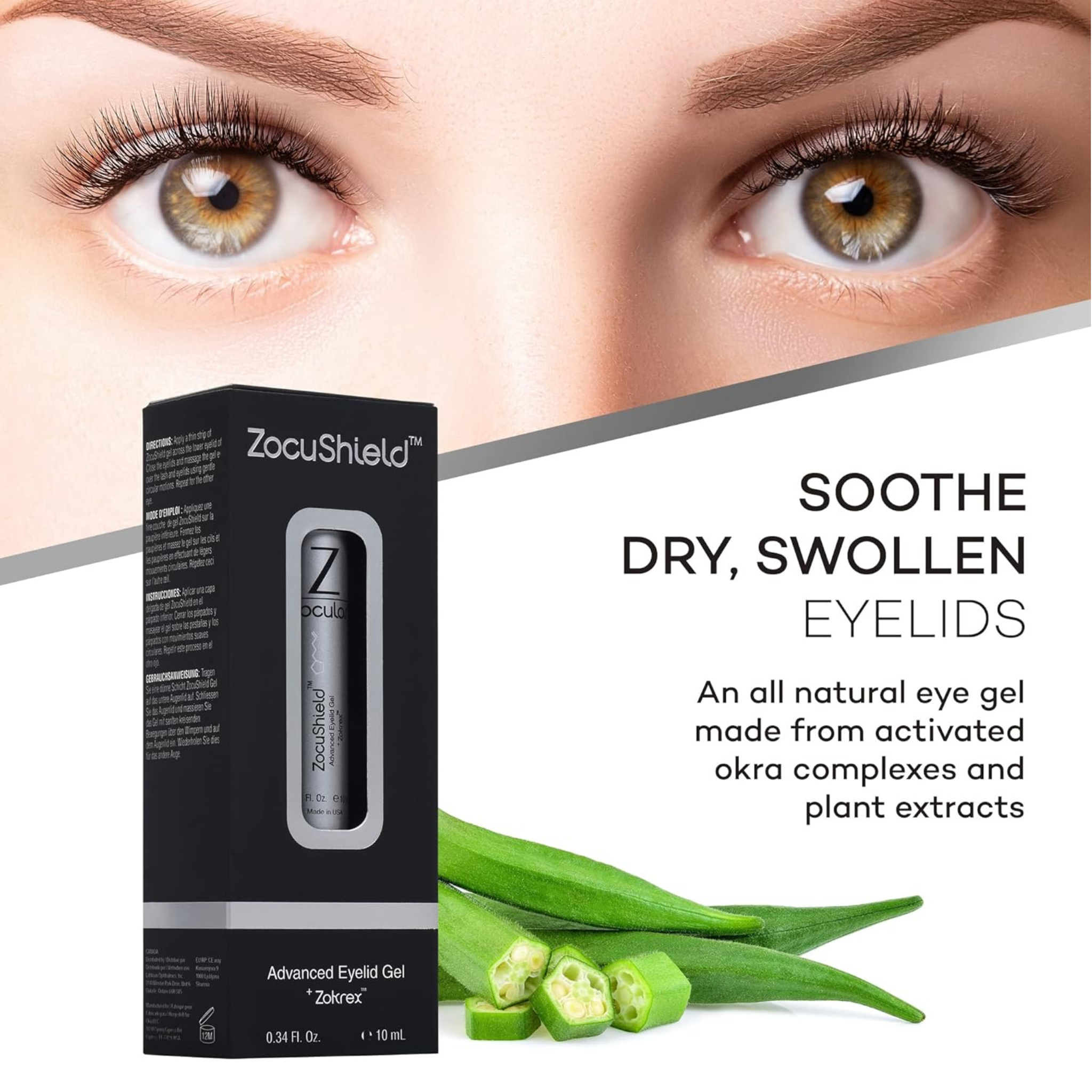 ZocuShield™ is an ophthalmologist developed eyelid gel featuring Zokrex™ which delivers activated okra complexes to soothe dry, swollen eyelids and undereye area.