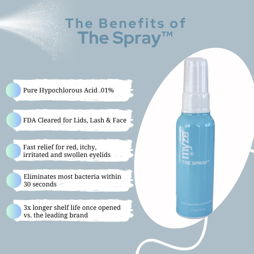 Unlike all other hypochlorous acid sprays, The Spray™ is the ONLY spray approved by the FDA for eyelid, eyelash and full face.