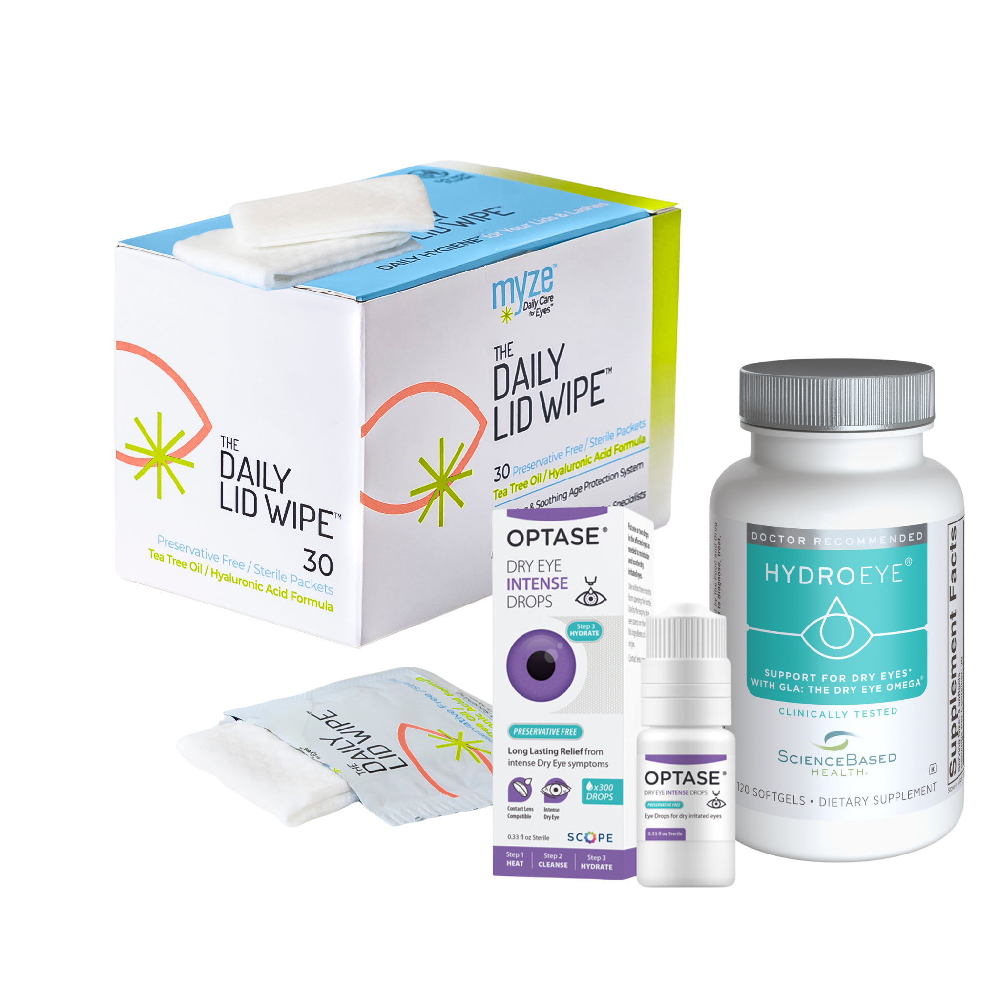 The Daily Lid Wipe™ – Gently cleanse each eyelid margin and surrounding lid area for 15-30 seconds in the morning and/or at night