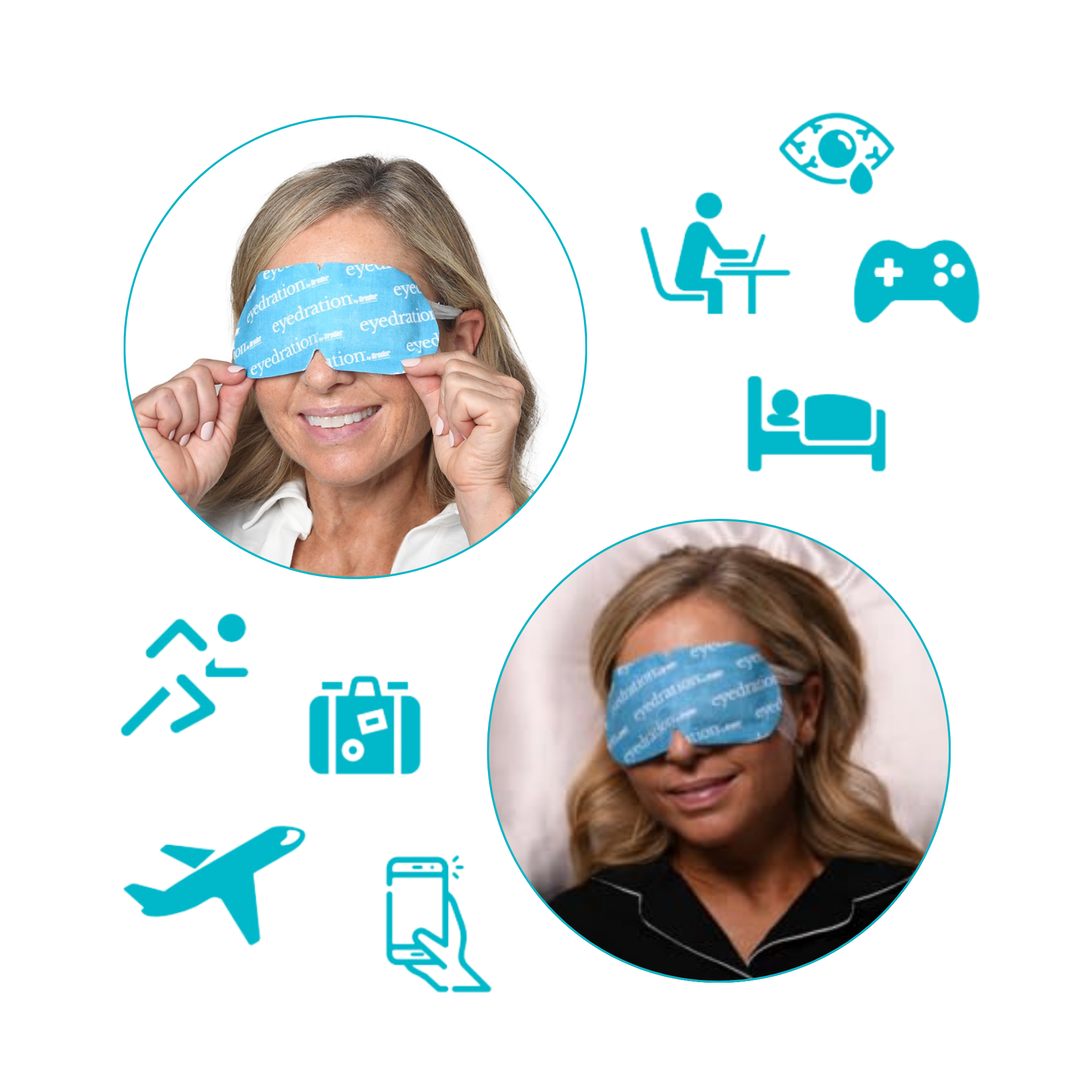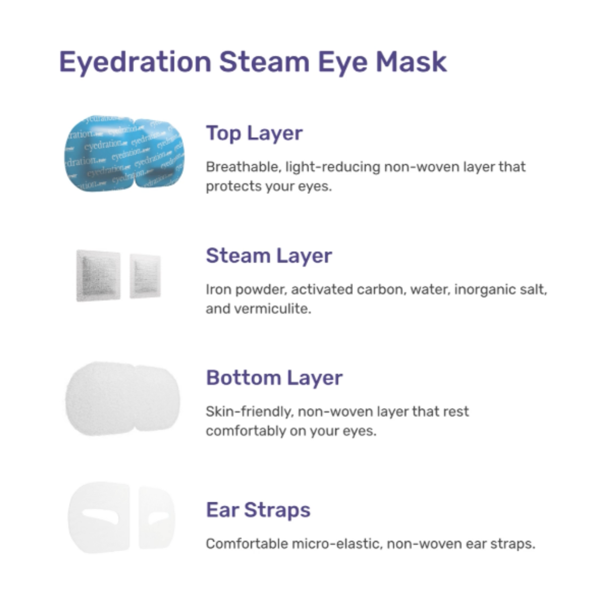 An Eyedration mask is a soft, self-heating, single-use eye mask that, once opened, provides quick therapeutic, moist heat, delivering relief and promoting natural eye hydration.