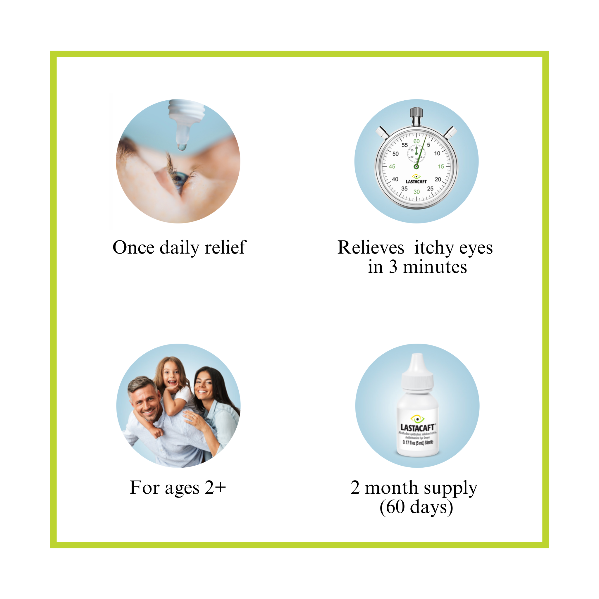 - Lastacaft®(Alcaftadine ophthalmic solution) 0.25% is a once-daily antihistamine eye drop that acts fast to relieve itchiness of the eyes due to allergies.