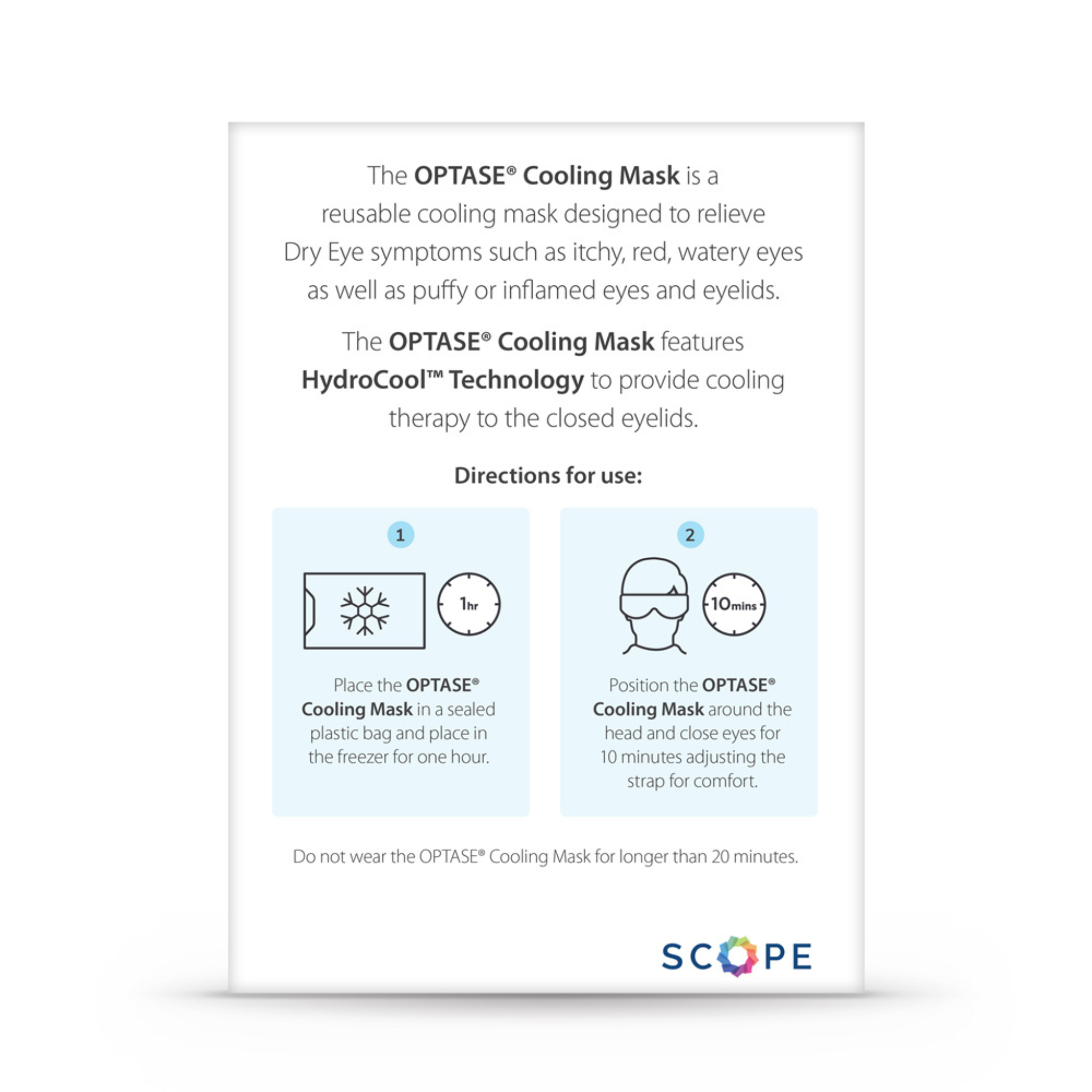 - OPTASE® Cooling Mask is soft and comfortable to wear, and contains HydroCool™ beads which absorb cold energy. This is transferred to patient by applying the mask on the eyes.