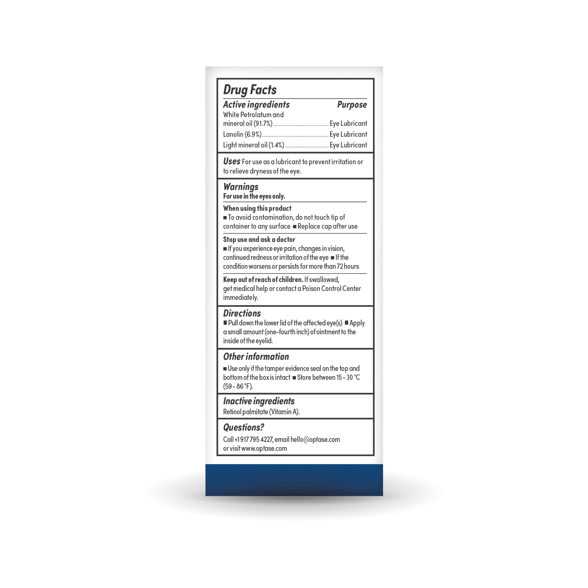 Active ingredients: White Petrolatum (91.72%), Lanolin (6.9%), Light Mineral Oil