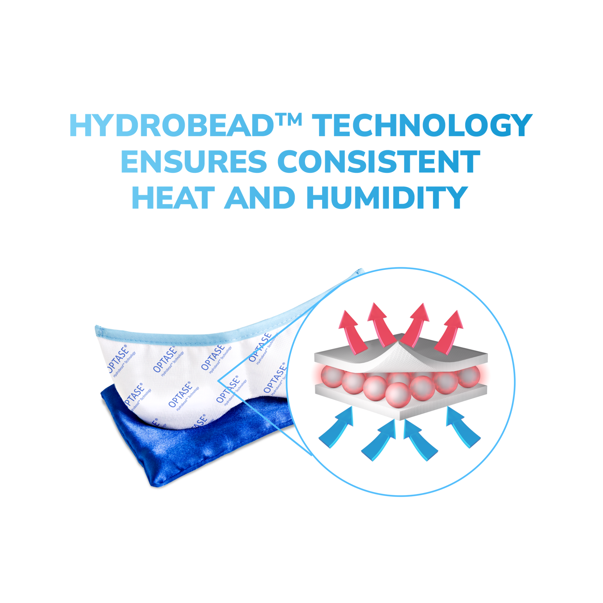 The OPTASE® Moist Heat Mask is made with Hydrobead™ Technology which absorbs and stores moisture from the air.