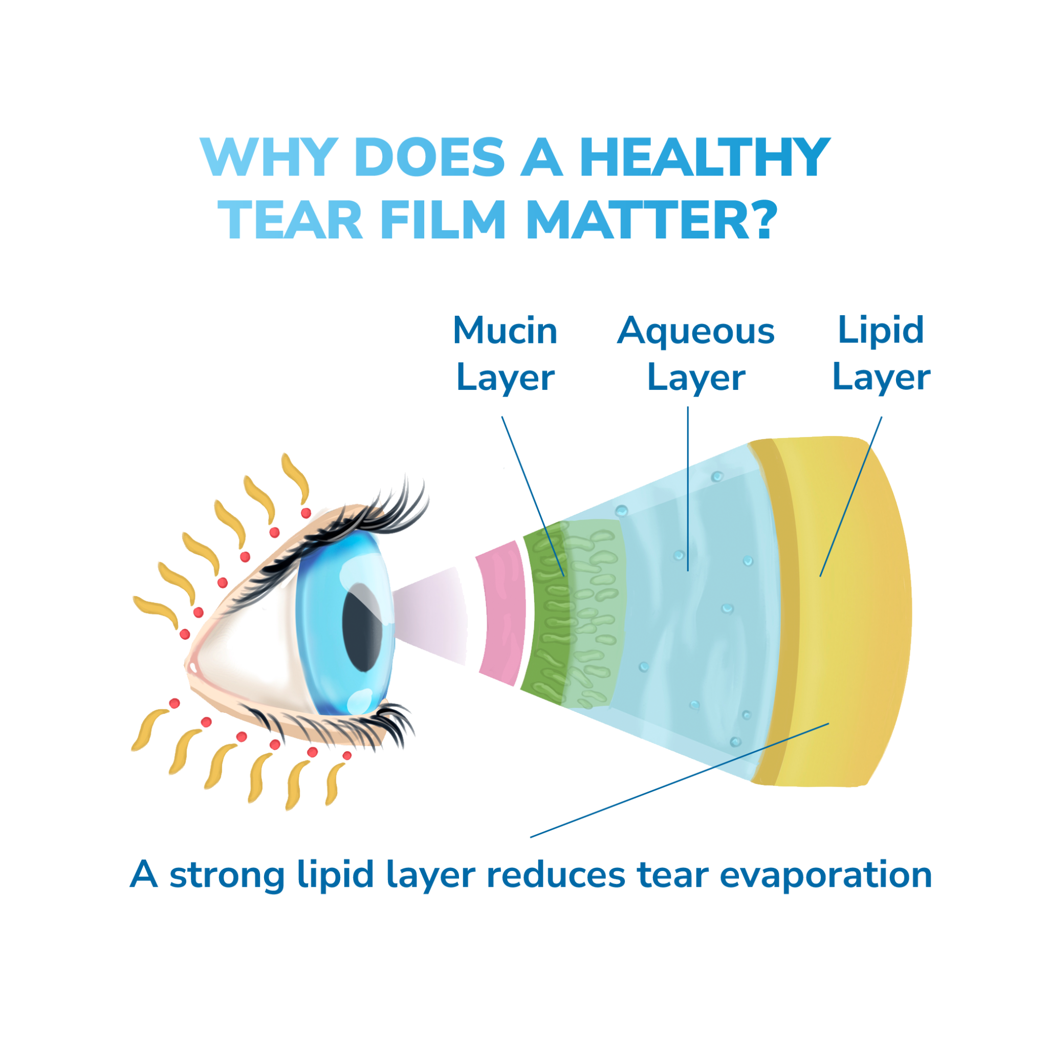 Tear film evaporation is one of the main contributing factors to Dry Eye Disease which can result in painful symptoms and irritation.