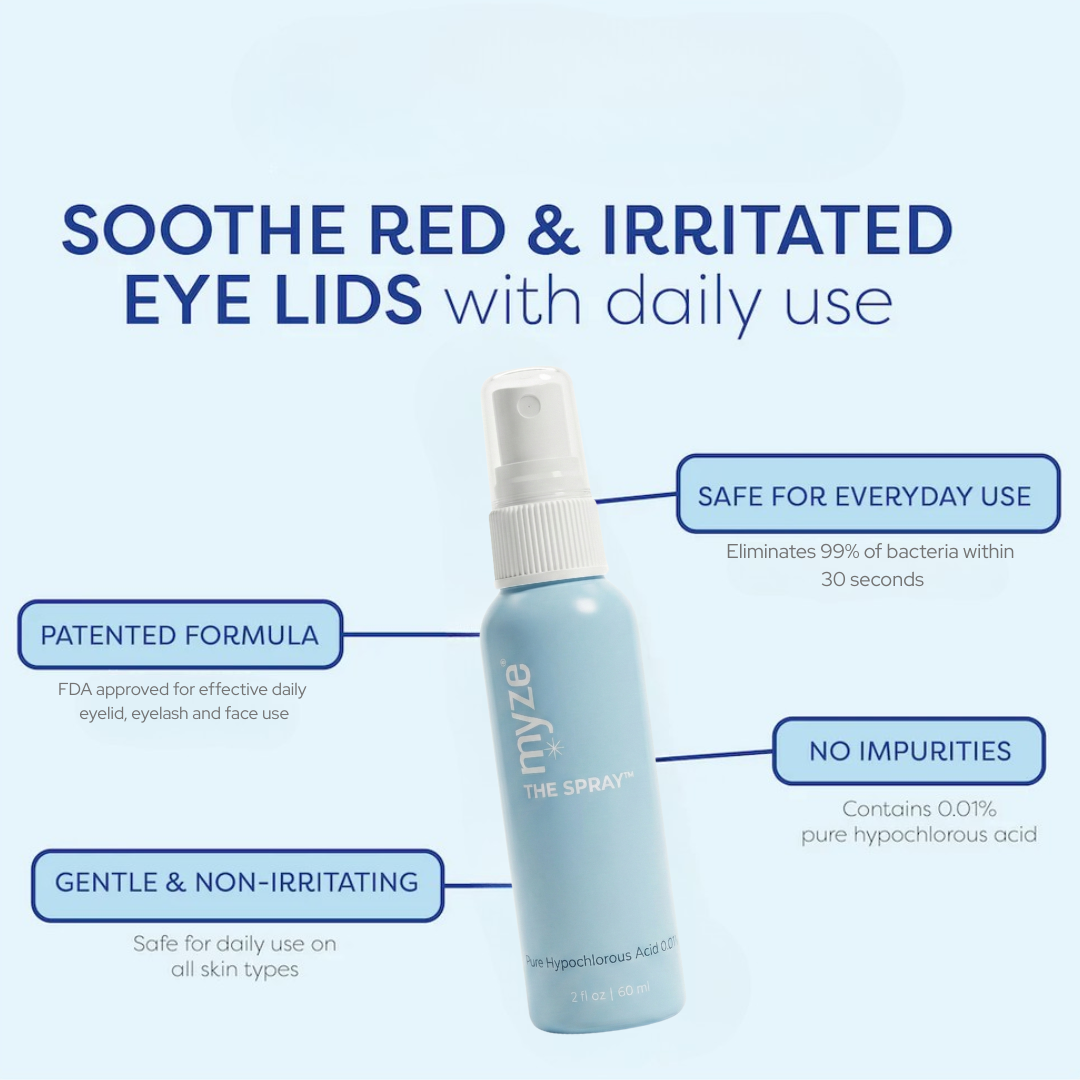 Unlike all other hypochlorous acid sprays, The Spray™ is the ONLY spray approved by the FDA for eyelid, eyelash and full face.