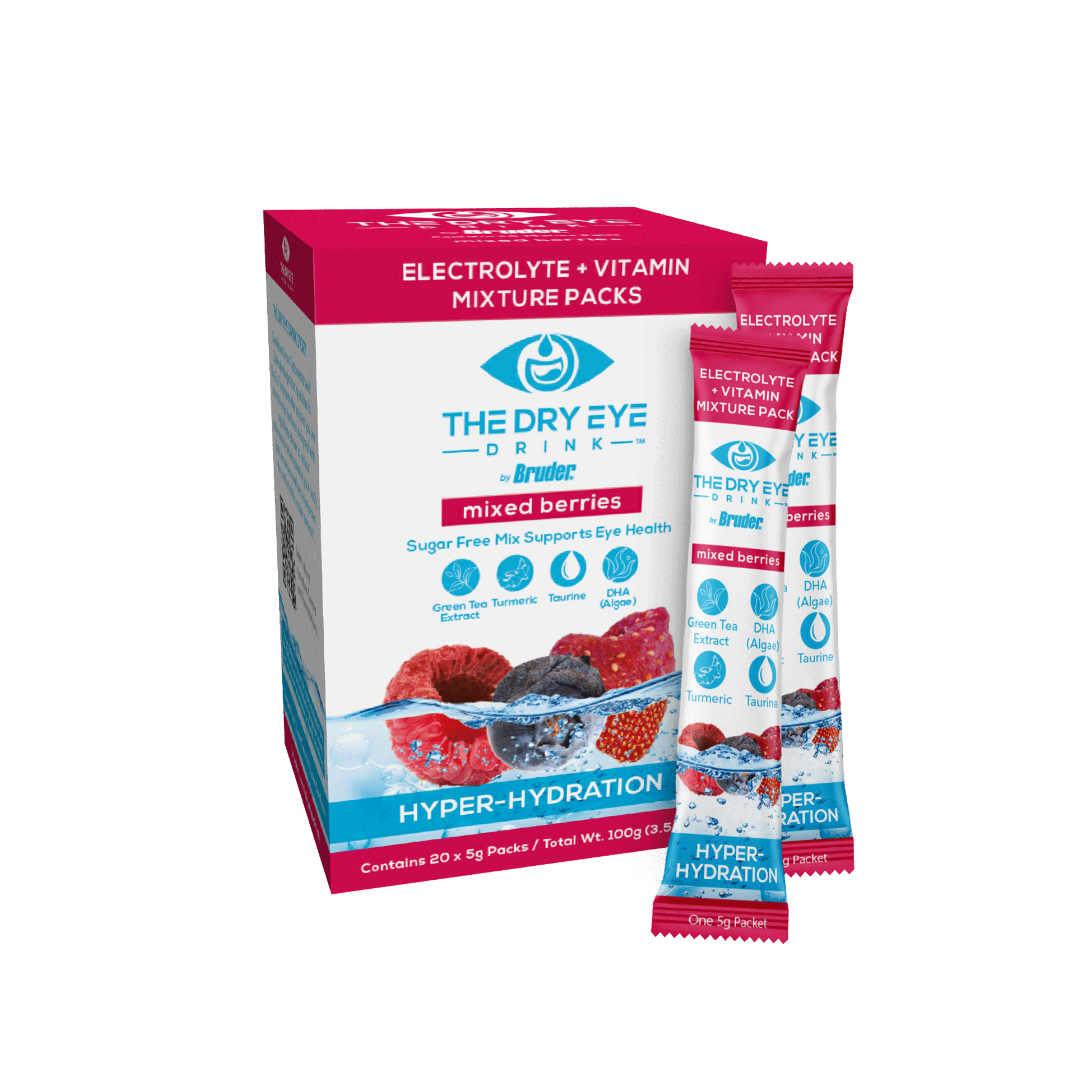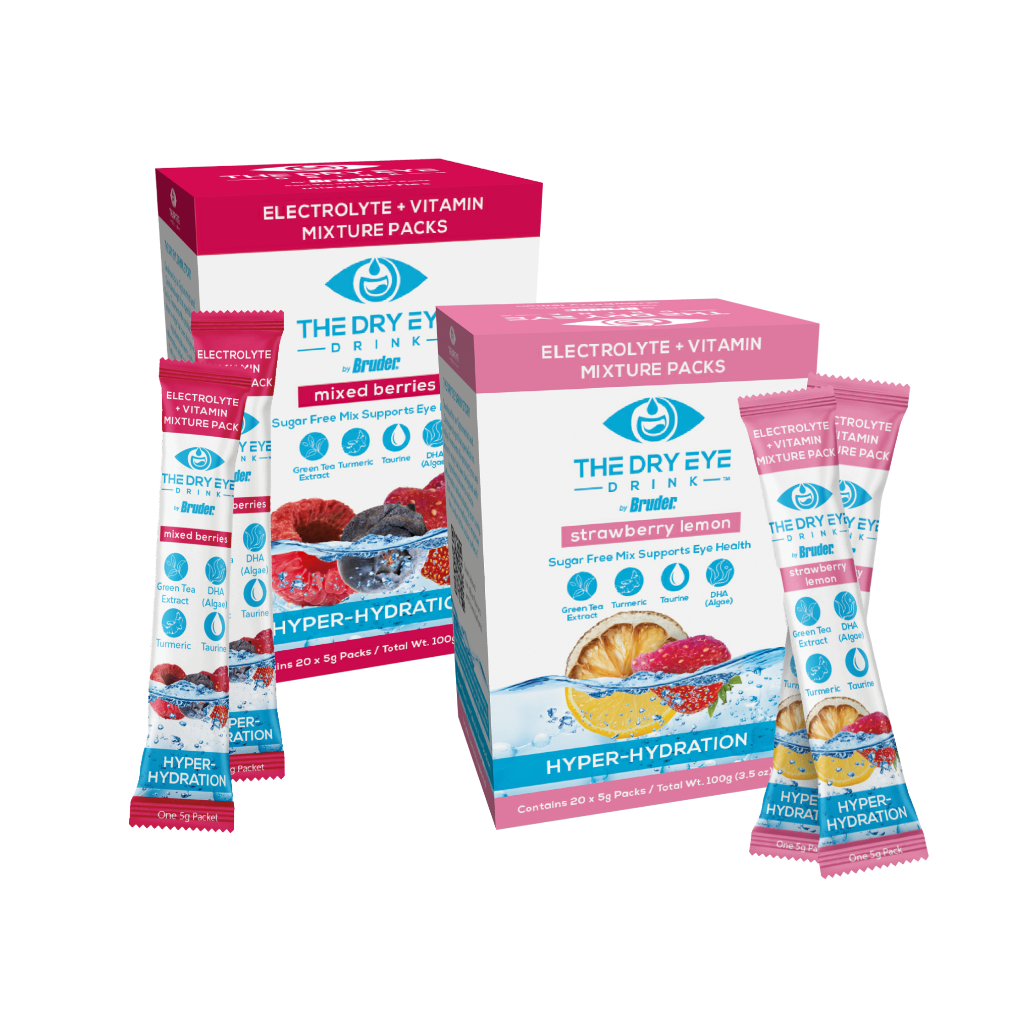 The Dry Eye Drink hyper-hydration mix boosts hydration with anti-inflammatory ingredients that offer the daily wellness intake to keep your body and eyes hydrated and healthy.