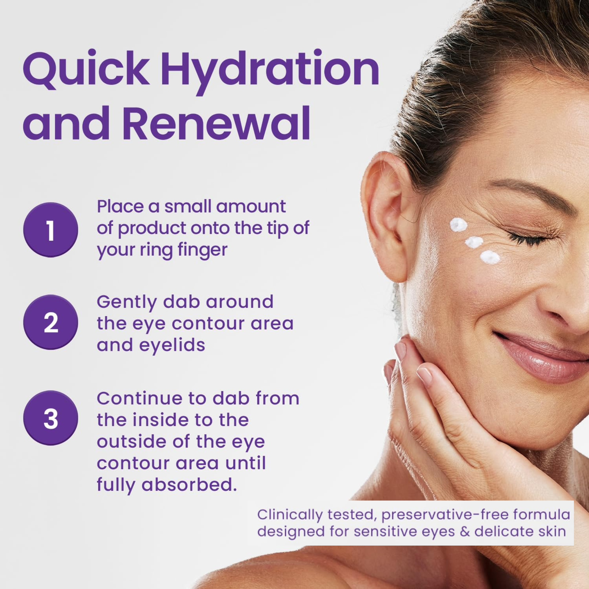 A preservative free fast-acting hydrating eye cream that deeply replenishes moisture to renew dull and sensitive skin around eyes.