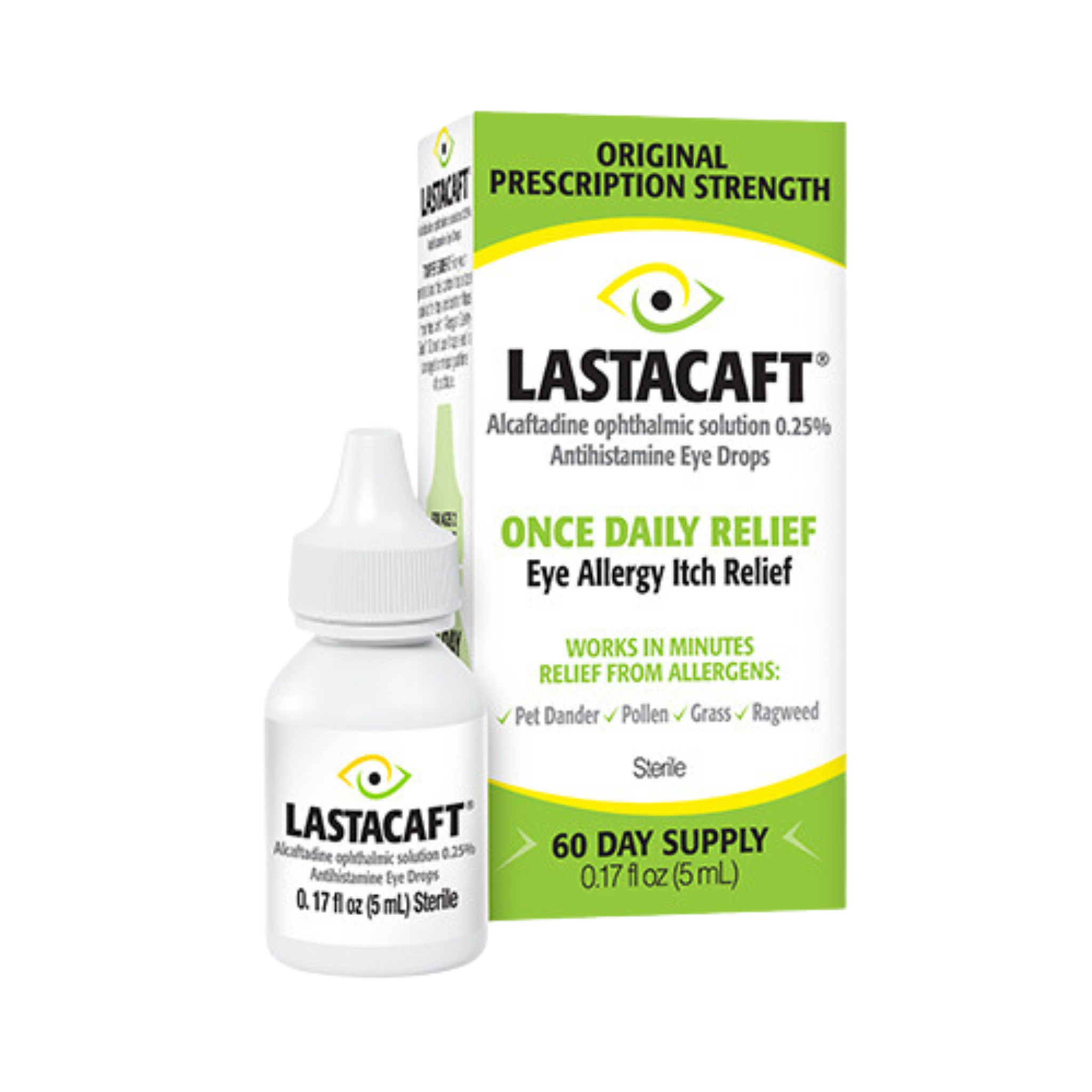 - Lastacaft® (solución oftálmica de alcaftadina) al 0,25% es un colirio antihistamínico que se toma una vez al día y que actúa rápidamente para aliviar la picazón de los ojos debido a las alergias.