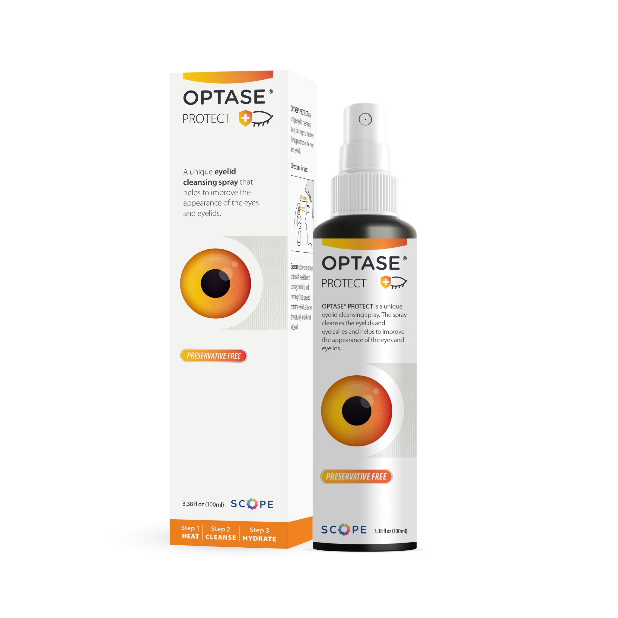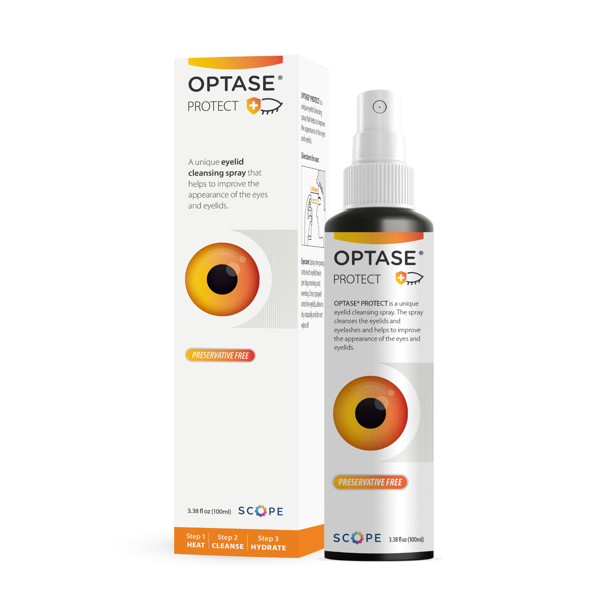 • OPTASE® Protect es un spray limpiador eficaz y suave, apto para uso diario. Rocíe una dosis en cada párpado cerrado por la mañana y por la noche. ¡No es necesario enjuagar ni limpiar! Simplemente deje que la solución se seque de forma natural.