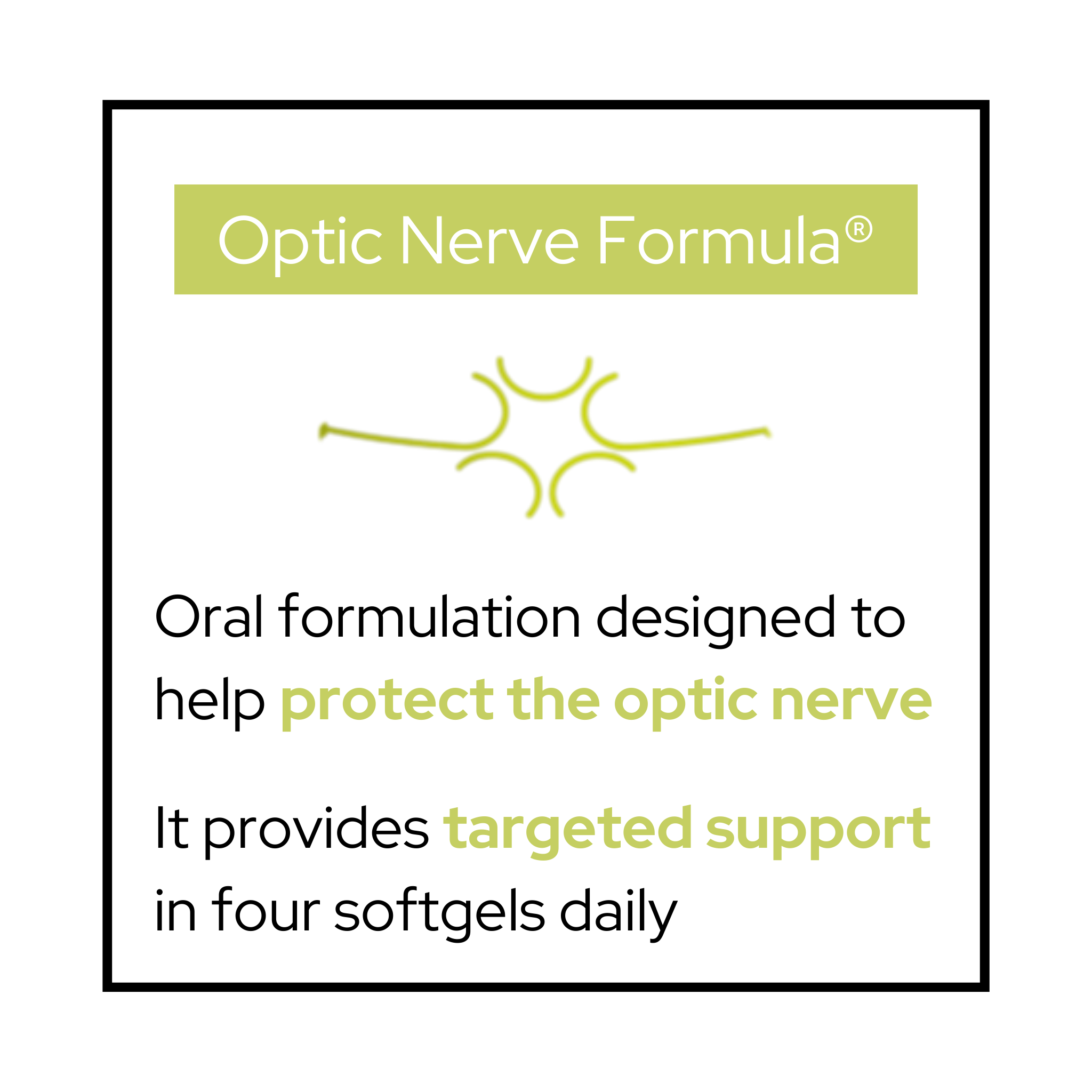 • La fórmula clínicamente probada (Acta Ophthalmologica, 2017) ofrece apoyo específico para la salud del nervio óptico.
