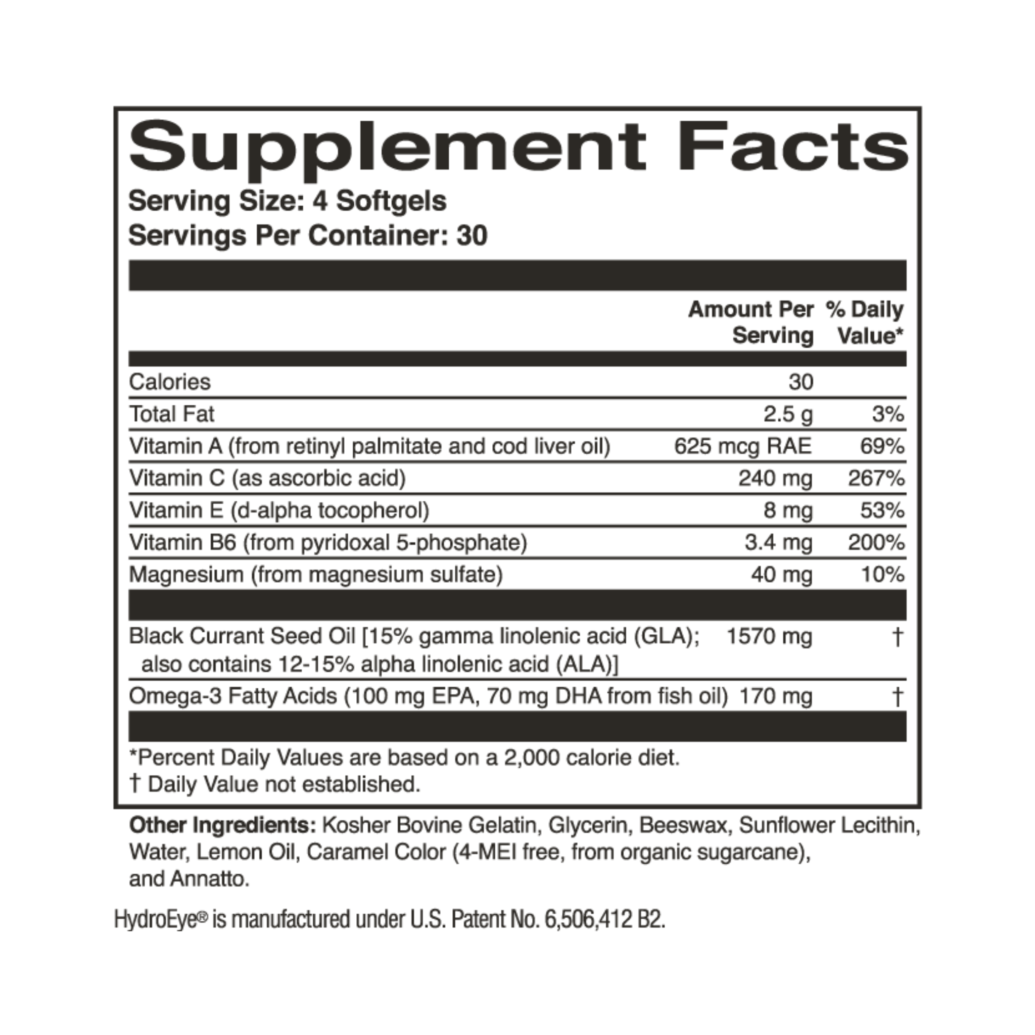 Patented formula delivers a proprietary blend of GLA and omega 3 fatty acids (EPA and DHA), antioxidants and other key vitamins and minerals that work together to support a healthy tear film and soothe the ocular surface.