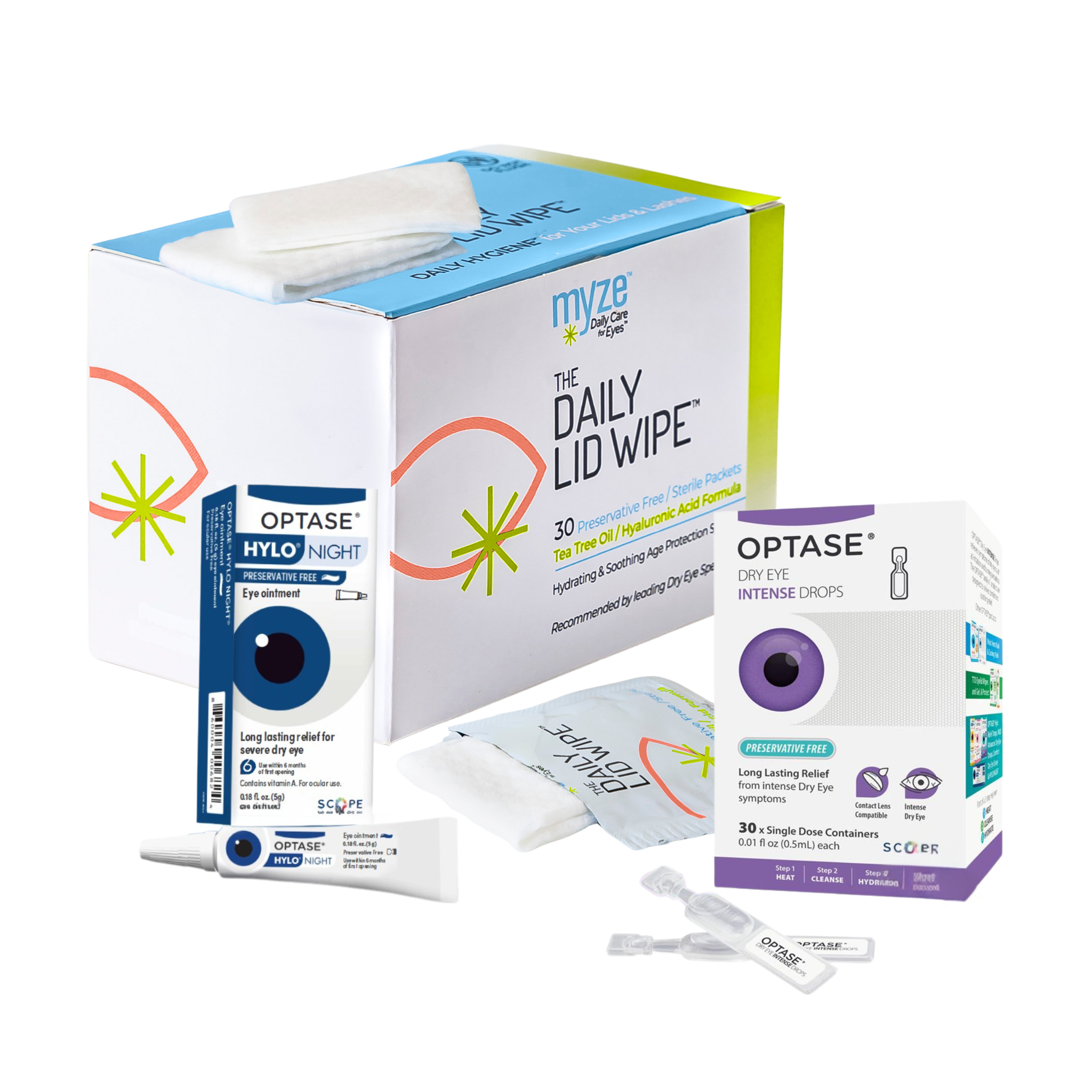Daily products to help relieve symptoms of more severe dry eye, and more advanced Meibomian Gland Dysfunction (MGD).